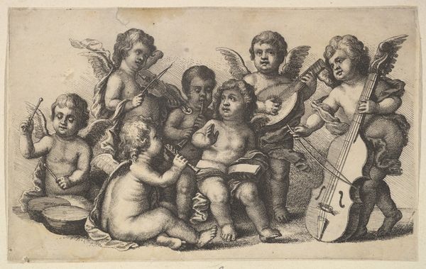This vignette of a boy playing the mandolin for a girl was made by Lorenz Frølich with pen and watercolor. The process begins with the artist sketching with a very fine pen to outline the figures of the two young children, building tone by hatching areas with closely spaced parallel lines. Then, the artist applied thin washes of watercolor to softly define the forms and add delicate color to the piece. Look closely, and you can see how the penwork and the watercolor wash work together to define shape and volume with economical grace. The artist's approach suggests an emphasis on drawing and design, rather than painterly effects. The controlled, precise lines and the limited use of color underscore the importance of the artist's hand in bringing the scene to life, and reflects the culture of drawing in the mid-19th century as a process of conception and design. By emphasizing the making, we can understand the artist's intentions and the cultural values embedded in the artwork.