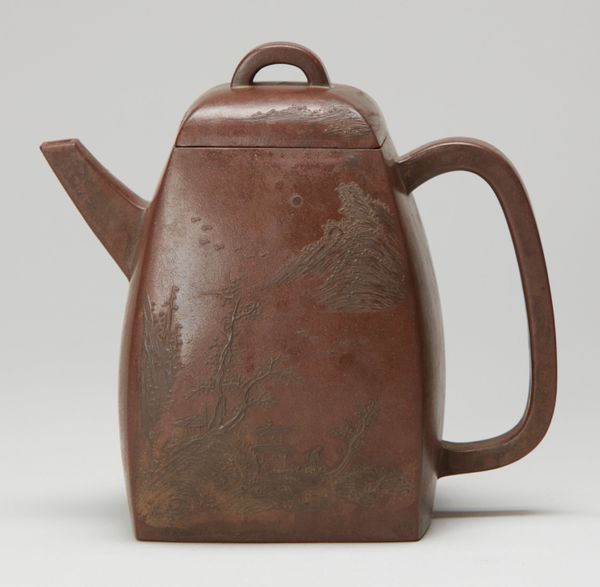 This is a covered jar made of earthenware, crafted by an anonymous artist. The jar’s modest form and earthy glaze speak to its likely origins in utilitarian pottery traditions. Without knowing the precise time and place of its creation, it’s difficult to pinpoint the specific cultural influences at play. However, we can appreciate how such an object reflects the everyday life of its users. The jar highlights the intimate connection between craftspeople and their communities. Objects like this challenge the traditional hierarchy of the art world, where fine arts are valued over functional crafts. It prompts us to consider the role of museums in preserving and presenting objects from diverse cultural backgrounds. By studying the materials, techniques, and forms of such objects, we can gain valuable insights into the social and economic conditions that shaped their production.