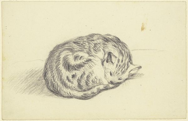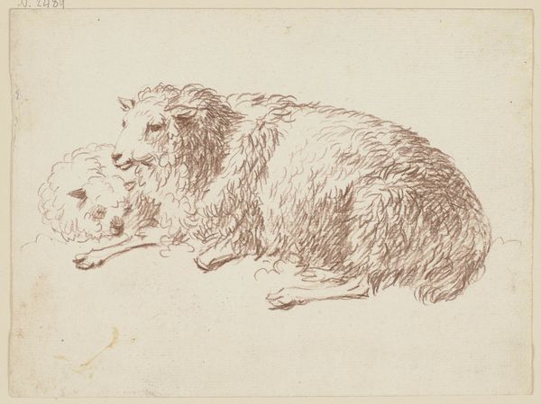 Editor: Here we have "Liegende Ziege, sich putzend," which translates to "Lying Goat, Cleaning Itself" by Friedrich Wilhelm Hirt. It's rendered in ink and graphite and resides here at the Städel Museum. It's a very simple composition; the texture really captures my attention. How should we read this work? Curator: Well, considering the means of production—the simple act of sketching a mundane subject like a goat cleaning itself using accessible materials like ink and graphite—it suggests a focus on the everyday labor of both the animal and the artist. It almost seems a democratizing process, blurring the lines between high art and craft. Editor: Democratizing, that's interesting. I hadn’t considered the artistic labor aspect so directly. Curator: Look closely at the marks; they're not just depicting form. They're also a record of the artist's hand, his movements, and decisions. Are they economical in their application? Editor: Now that you mention it, yes. Each line seems deliberately placed. So you're saying the drawing isn’t just *of* a goat, but *about* the act of drawing itself? Curator: Precisely! And we should consider the availability of materials in Hirt's time. The relative affordability of ink and graphite suggests a widening of artistic practice beyond traditional academic circles and the role consumption plays in art creation. Editor: I never thought of it that way before; it’s about the tools as much as the subject. It certainly offers a new way of appreciating seemingly simple drawings. Thank you! Curator: My pleasure. Focusing on materiality often unlocks unexpected perspectives.