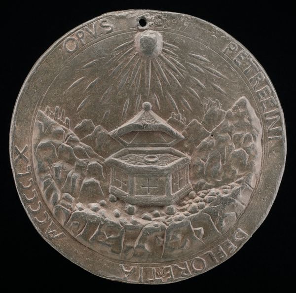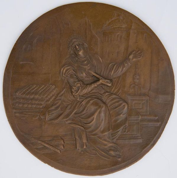Editor: Here we have a bronze relief titled "Ate and the Litae". It's anonymous and I find the composition quite evocative. What do you see in the arrangement of figures and space? Curator: The composition emphasizes a clear separation between realms. Note the figure suspended above, distinct from the earthbound figures below, divided through carefully modeled spatial recession. Editor: The figures are compelling. How do you see the relationship of the figures interacting with the landscape? Curator: Indeed. The landscape serves to amplify the narrative. The formal balance creates a dynamic tension between the ethereal and the corporeal, using contrasts in light and shadow to emphasize the figures' emotional states. Editor: Fascinating, it really shows how form and content can be so intertwined. Curator: Precisely. Form truly illuminates function.