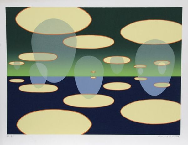 Curator: Here we have Giacomo Balla's "Marombra" from 1919, executed in oil. Immediately, it evokes such a stylized, almost theatrical sense of landscape. What are your first impressions? Editor: Wow, it feels like summer by the sea, but filtered through a Cubist kaleidoscope! All those shapes – waves, sails, even the sunlight – breaking down into geometric forms. A rather energetic experience for the eyes. Curator: Balla was, of course, deeply embedded within Futurism. We see his fascination with capturing movement and energy—the dynamism of modern life represented through form, line and color. Notice how the lines create both division and continuity, connecting the sea to the sky. Editor: The colors are very striking, too. That azure blue next to those sunny yellows feels very optimistic. Like a joyous proclamation about the machine age, only… gentler. It’s a landscape; not a speeding train! Curator: Absolutely. It's as if Balla is reconciling his Futurist ideals with a longing for natural beauty. In that way, it speaks to a broader theme of that era: the intersection between technological progress and our innate connection to the world around us. The abstracted geometric forms speak to that. The human mind organizing nature! Editor: It's that very contrast, perhaps, that gives the painting its enduring appeal. It doesn’t shout its message but, rather, whispers it through harmonious composition and surprisingly soothing colors. I think I want this in my meditation space. Curator: It seems you see it as more of a harmonic experience? Editor: I do. It’s an unusual thing. What started as a movement obsessed with speed, energy and industry has been sublimated in "Marombra" into a beautiful, almost restful harmony. Funny how things evolve, eh? Curator: Yes indeed. It certainly reveals an introspective aspect to the Futurist project. A testament, perhaps, to the multifaceted nature of any artistic endeavor. Editor: It definitely stays with you. I keep discovering new shapes every time I look. It’s one of those pieces you could return to again and again and never get tired of. Curator: A rewarding work that gives us great insights into Italian Futurism through the mind of an iconic creator!