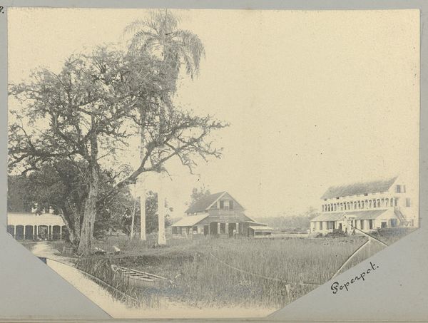 Curator: Look at this gelatin silver print, "Het Postkantoor te Paramaribo," created sometime between 1900 and 1910 by Eugen Klein. It’s held here at the Rijksmuseum. Editor: It's evocative. Something about the way the light falls, it feels quiet but expectant, like a stage set just before the actors arrive. I’m intrigued. Curator: Klein really captures the blend of colonial architecture and the everyday lives playing out around it. We see the post office itself, quite stately, but also this woman walking across the street, those telephone poles jutting into the sky. There's this layering of worlds. Editor: Absolutely. Those power lines slicing across the sky signal modernization and, of course, colonialism. The photographic landscape tradition always runs a bit orientalist, right? It’s not just a neutral recording; it frames a relationship. Who is doing the looking and what are they seeing…or choosing to see? Curator: Yes! And Klein, though Surinamese, operated within the visual language dominant at the time, highlighting specific elements. He chooses to include the woman, giving her this space in the frame, perhaps drawing attention to her own place in that complex relationship. Editor: I'm thinking about visibility, representation. The architecture signifies power and institution. Who had access to that post office, and what messages were they sending and receiving? The woman traversing the space becomes, maybe, a stand-in for the narratives outside the frame. Curator: It's amazing how much history can be held in a seemingly simple street scene, wouldn’t you say? Editor: It makes me consider those lives lived within and around the captured scene, the hidden layers in the seemingly ordinary. It also highlights the necessity to decolonize how we look at photographic archives!
