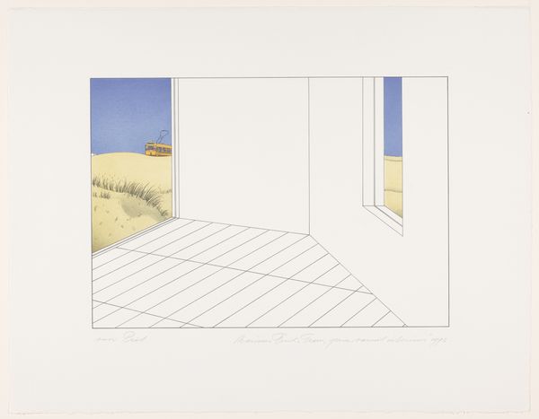 Nono Reinhold made this piece, Doorkijk in gele muur, with graphic arts techniques that have created this evocative window, where the buttery yellow of the wall meets the cool indigo and glimpses of light outside. The texture here is subtle, like the grain of the paper is part of the image itself. It makes me think about the physicality of the printmaking process. You can almost feel the pressure of the press, the way the ink has been coaxed onto the page. Look at the lower section of the image where the wall sits. There is the suggestion of the shadow. This is not just about replicating a scene; it's about capturing a mood, a moment of quiet contemplation. Reinhold reminds me of other artists who use architectural forms to create an introspective space, like, say, Giorgio de Chirico, but with a softer touch. It’s not just about what you see, but how it makes you feel.