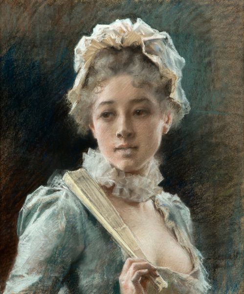 James Tissot made this pastel drawing, Portrait of an Actress in Eighteenth Century Dress, in France, during the second half of the 19th century. The portrait speaks to the enduring allure of the 18th century and its fashions. France, at this time, was undergoing major social and political upheaval. The rapid industrialization and urbanization changed the fabric of French society, and artists looked to the past. The actress is depicted in a costume that evokes the opulence and extravagance of the pre-revolutionary era, but this is not an accurate historical rendering. Her dress has been updated with a style more reflective of the 1860s or 70s. The portrait, therefore, might be a comment on the political turmoil France was experiencing and an attempt to use the past to critique or comment on contemporary society. To understand this artwork more fully, we might consult historical records, fashion plates, theatre archives, and critical reviews. We must see it as part of a broader cultural conversation about national identity, memory, and the role of art in shaping our understanding of the past.