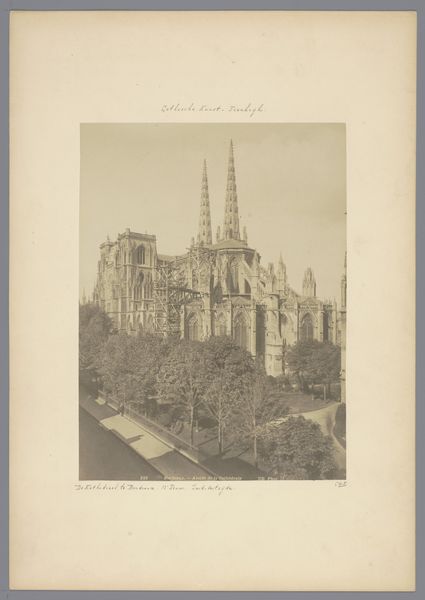 This photographic print captures the Gezicht op de Stephansdom te Wenen, and it looks like it was made by the Wurthle & Sohn at some point, though it's hard to pin down when exactly. Looking at this image, I'm struck by how the monochromatic tones lend a timeless quality, yet the detail in the architecture is incredible. The surface of the photograph has a fine grain, but I’m more drawn to the intricacy of the cathedral’s façade. Take a look at the steeple, how it rises with such delicate articulation. The eye is lead skyward, drawn to the heavens but brought back down to earth by the weighty foundations of the building. The image is a testament to the Gothic style, how those forms reach up. It reminds me of the work of Bernd and Hilla Becher, their photographic series of industrial structures. Like them, Wurthle & Sohn seem interested in capturing the essence of a building, while suggesting that a work of art is always going to be open to multiple readings.