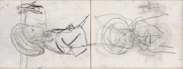 Editor: Here we have Isaac Israels's "Vrouwenhoofd en een staande vrouw met schort," dating from somewhere between 1875 and 1934. It’s a drawing, pencil and pen on paper, housed at the Rijksmuseum. The sketchiness makes me feel like I’m intruding on a private moment of observation. What’s your read on this piece? Curator: It's fascinating how a simple sketch can offer such insight into the artist's process and the societal context. Israels, often associated with Impressionism, captures more than just the visual appearance; he gives us a glimpse into the lives of working-class women. Note how the sketch emphasizes the "schort," or apron. What does the apron symbolize, do you think, in the context of late 19th, early 20th century Dutch society? Editor: I guess it immediately signifies domestic labor, maybe even servitude? The unfinished nature adds to that vulnerability, as if the subjects are caught unaware. Curator: Precisely! Consider how Israels positions these women within the broader artistic landscape. The art world then, like today, often overlooked the working class, particularly women. By sketching them, he elevates their status, documenting their everyday existence. Do you think there’s a political dimension to this kind of artistic choice? Editor: It feels almost like a subtle act of resistance, acknowledging those often ignored by mainstream art. He isn't glorifying wealth or status but is documenting the lives of ordinary people. Curator: Exactly! And by leaving it as a sketch, he avoids idealization. It is reality—raw and unvarnished. It makes me wonder, who were these women, and what were their stories? The incompleteness invites speculation but also serves as a reminder of the partial and often biased historical record. Editor: It's amazing how much a simple drawing can reveal about social structures and the artist's role within them. It gives you so much to think about. Curator: Indeed. It reminds us to look beyond the surface and to question who and what gets represented, and why. I learned to view Israels as someone interested in all members of society.