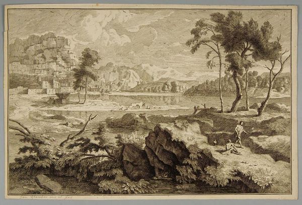 Curator: Wilson Lowry's "Musical Shepherdess," residing here at the Harvard Art Museums, presents a pastoral scene, but what strikes me first is its serene, almost melancholic tone. Editor: Yes, the Arcadia seems a bit…industrialized, doesn’t it? Note the aqueduct on the horizon, hinting at human intervention in the landscape. Curator: Indeed, Lowry's masterful engraving technique allows for intricate details. Look at the way the light plays across the water, the varying textures of the foliage. It’s a landscape transformed by labor. Editor: And the shepherdess, seemingly oblivious to the industrial intrusion, remains a timeless symbol of a simpler existence. She's a visual echo of a pre-industrial mythos. Curator: That contrast is key. The image speaks volumes about the evolving relationship between humanity, industry, and the land. Editor: I agree. It's a visual commentary on the changing landscape of the time. Curator: Precisely, so much to glean from Lowry's process, even beyond its charming, idyllic surface. Editor: It's a fascinating intersection of symbol and reality, reminding us of enduring cultural anxieties.