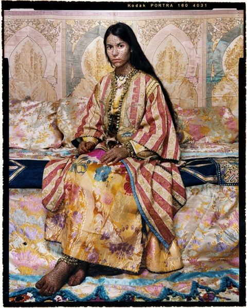 Lalla Essaydi made Bullet #6, using photography, and the effect is something between painting and collage. The gold here isn't just a color, it's a substance, an atmosphere. Look at the way she's layered patterns upon patterns, like she's building a space out of pure ornament. The figures almost blend into the background, becoming part of this dense, decorative surface. Notice the details: the way the light catches on the metallic surfaces, creating a shimmering effect, and the way the patterns seem to shift and move as you look at them. The figures in the image seem to be ornamented with calligraphy. The more you look, the more the surface seems to dissolve and reform. I think about how the work of someone like Gustav Klimt may have been an influence, where the surface of the painting is just as important as the subject. It's not just about what we're seeing, but how we're seeing it. Essaydi invites us to question our assumptions about beauty, identity, and the very act of looking.