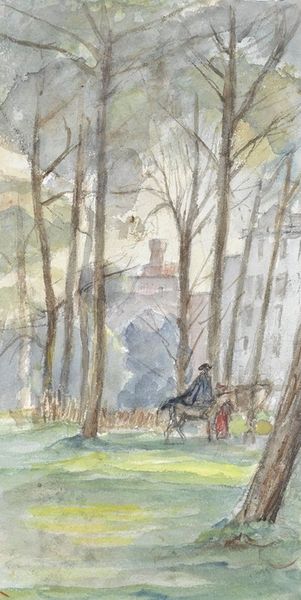 Iosif Iser's painting captures a Parisian park scene with the dominant feature of a bridge overhead. The bridge itself, an architectural symbol of connection and transition, echoes bridges found in classical Roman art, structures intended to not only span physical divides, but also to connect diverse cultures and ideas. Notice, beneath the bridge, a couple stands together, their figures rendered in strokes of red. This splash of color draws the eye, but also evokes images of couples in earlier Romantic paintings, where such figures often symbolize love, companionship, and the complex emotional interplay between individuals. The very act of depicting figures in a landscape can be traced back to Arcadian ideals, yet here, Iser infuses the scene with a modern sensibility, an emotional resonance that captures the subconscious longings for connection in an urban setting. Through this imagery, the idea of human connection is not linear but cyclical, continuously resurfacing through art.