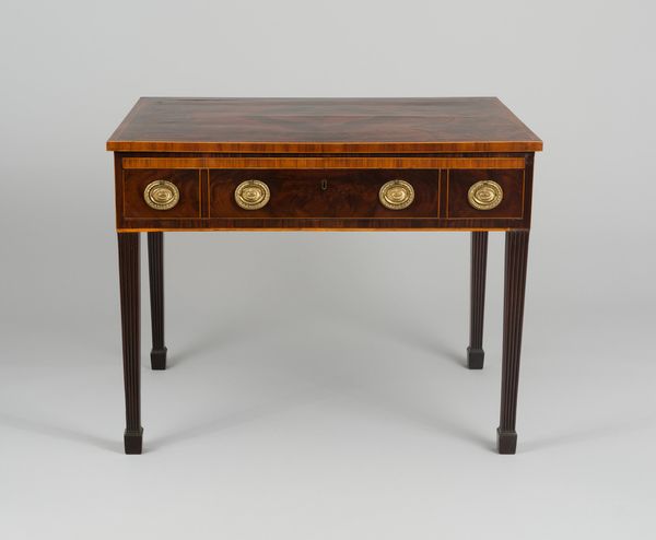 Editor: This wooden desk, made around 1903 by the Craftsman Workshops of Gustav Stickley, looks so sturdy and functional. It almost feels like a silent rejection of the overly ornate styles that came before. What do you see in this piece, beyond just a desk? Curator: I see a manifesto! The Arts and Crafts movement, of which Stickley was a key figure, arose as a direct response to industrialization. Think about the social context: factories churning out cheap, mass-produced goods, displacing skilled artisans and devaluing human labor. This desk embodies a return to handcrafted quality and honest materials. Editor: So, it’s a political statement in furniture form? Curator: Absolutely. The desk's simplicity—the exposed joinery, the visible wood grain—celebrates the maker’s hand. It resists the capitalist notion of disposable goods, instead advocating for durable, beautiful objects that connect us to the natural world and the dignity of work. Consider how this philosophy aligns with contemporary concerns around sustainability and ethical consumption. What do you think of this from an intersectional point of view? Editor: It's interesting to think about that. Whose hands actually made the piece? Were they paid fairly? Access to beautiful, well-made items probably depended a lot on one's socio-economic status at the time. Curator: Precisely. Critically examining who benefits from these aesthetics is vital. But even with those questions, it prompts us to challenge the values embedded in mass-produced, often exploitative systems that dominate our current moment. Editor: I never thought about furniture having so much to say! I will look at these types of designs with different eyes from now on. Curator: Exactly. Engaging art means understanding it’s intertwined with these kinds of bigger, complicated pictures.