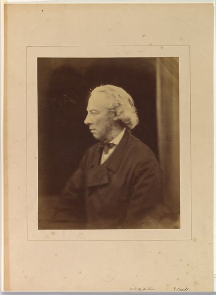 This photograph of the painter Philippe-Jacques van Bree was taken by Joseph Dupont in the 19th century. The composition is structured around a central figure, Van Bree, whose formal attire and poised stance exude bourgeois confidence. Dupont's use of sepia tones flattens the image. The structure of the image invites us to consider the semiotics of portraiture. Van Bree's clothing, the placement of his hand on his hip, the top hat, and even the patterned backdrop all contribute to the construction of an identity rooted in the values of his time. Dupont masterfully orchestrates these visual elements to convey not just an image of an individual, but an image of social status and cultural belonging. Consider the formal implications: the choice of monochrome, the meticulous arrangement of the figure and props. The photograph functions as a cultural artifact that participates in the broader discourse of representation and social identity.