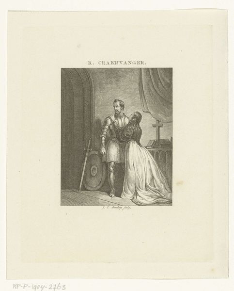 This print, depicting Willem II and Anna Paulowna, was created by Philippus Velijn using the technique of mezzotint. The print's subtle gradations of tone are achieved through a labor-intensive process. First, the copper plate is roughened evenly with a tool called a rocker. Then, the artist smooths certain areas to varying degrees, creating a range of light and shadow when inked. Mezzotint allowed for the relatively easy reproduction of images. This print reflects the increasing demand for affordable images during the 19th century. It democratized portraiture and facilitated the circulation of royal imagery. The print's texture and tonal range communicate wealth and status, while its reproducible nature underscores the complex relationship between art, labor, and consumption in the modern era. It is important to consider the broader social context in which it was produced. Appreciating the work involved in its making helps us move beyond traditional notions of art, connecting it to the wider world of craft, design, and industrial production.
