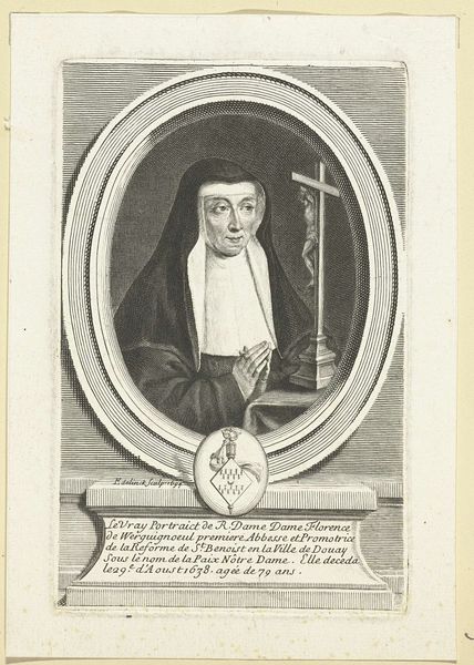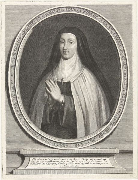 Gérard Edelinck's portrait of Louise-Eugénie de Fontaine presents us with the stark visual language of religious devotion. The central symbol, of course, is the cross, prominently displayed on her chest. In the context of 17th-century monastic life, it signifies sacrifice and faith. But, the cross does not appear ex nihilo. We see its echoes in ancient Egyptian ankhs or the Roman crux ansata, symbols of life itself. Over time, the cross has evolved, shifting from a pagan symbol to a core emblem of Christian martyrdom and salvation. It is a powerful force, engaging viewers on a deep, subconscious level. The nun's somber gaze and the unadorned lines of her habit evoke a sense of solemn commitment. In viewing this portrait, one cannot help but contemplate the psychological weight of such devotion, and the collective memory it embodies. Ultimately, this emblem's cyclical journey through history is a testament to how symbols resurface, evolve, and take on new meanings in different contexts.