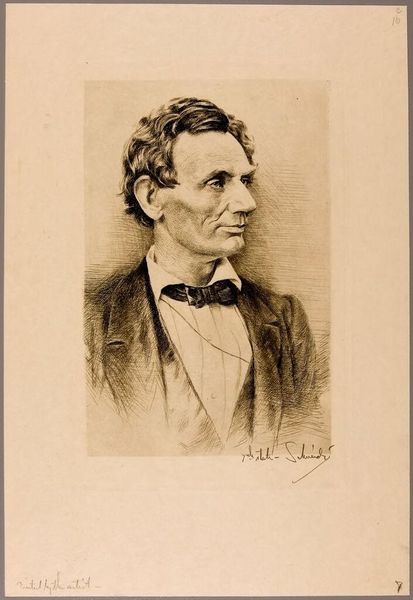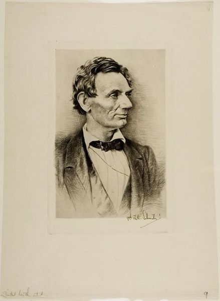 Curator: Before us is "The Young Doctor," a charcoal drawing created around 1848 by Eastman Johnson. Editor: There's a captivating blend of seriousness and uncertainty in this young man’s eyes. Makes me think about the weight of new beginnings, you know? That daunting precipice before you truly find your footing. Curator: The somber tones certainly contribute to that sense of contemplation. The artist's deft handling of charcoal is evident in the subtle gradations of light and shadow, especially notable in rendering the texture of his coat and the delicate curls of his hair. Semiotically, the dark attire and rather formal presentation suggest respectability, signaling a professional status, almost aspirational in its tone. Editor: Absolutely! It's all there in the details, isn't it? Like that ever-so-slightly askew tie! Or maybe, it isn't that it's askew at all and more so just adds a charming vulnerability to the overall composition. In my reading, it's not all that serious, though: perhaps the doctor’s a bit anxious because he forgot to memorize a diagnosis. It's about capturing a moment before the real thing—a little daydream before diving into the messiness of life. Curator: That reading isn’t entirely unsupported. The portrait, though veristic in style, flirts with elements of romanticism in its idealism. And Johnson was heavily influenced by genre painting, a move away from depicting idealized historical or mythical scenes, he depicted scenes from everyday life. This certainly brings a touch of relatable reality to the artwork, making the young doctor appear a part of real life. Editor: And that’s what resonates! We can project our own doubts, our own beginnings, onto him. That charcoal against paper; so immediate, raw and somehow gentle… It mirrors the doctor's moment, before all the case studies blur, before all the experiences happen. Before life shapes him irrevocably. It almost feels like, despite it's darker monochrome palate, it is hopeful at it's core. Curator: Indeed. The brilliance lies in how Johnson utilized a formal structure to communicate an emotional vulnerability. And even from a contemporary view, there are different facets to behold from different approaches. Editor: It has been such a refreshing experience! Let’s move on, though – I hear something delectable this way!