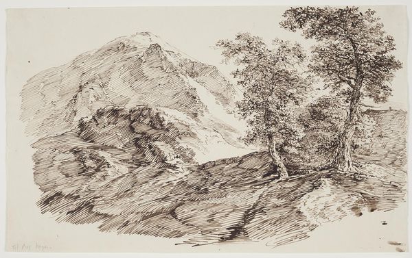 This landscape was made by C.F. Rumohr, using pen and brown ink. See how the mountains stand like silent giants, evoking a sense of timelessness. Mountains have long served as powerful symbols across cultures. Think of Mount Olympus, home to the Greek gods, or Mount Sinai, where Moses received the Ten Commandments. These natural formations often represent a bridge between the earthly and the divine, a place of revelation and spiritual ascent. In Romanticism, mountains are often used to evoke feelings of awe and sublime, connecting to a deeper, almost subconscious yearning for something beyond our everyday existence. As we contemplate these peaks, we are reminded of our own mortality and the transient nature of human endeavors. Observe how Rumohr renders the mountains with such detail, almost a geological precision, yet the effect is also deeply emotional. The mountains endure, bearing witness to the endless cycle of change, a testament to nature's power and resilience.
