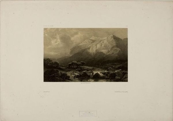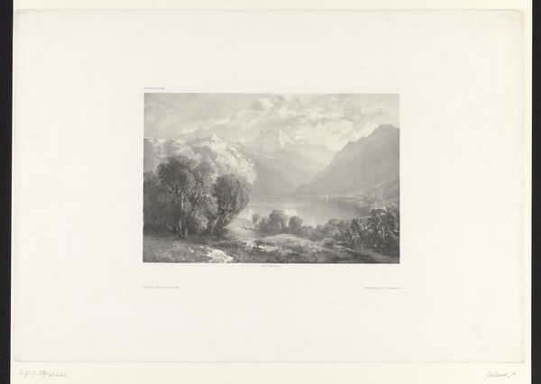 Curator: Alexandre Calame, born in 1810, rendered this evocative scene, titled Landscapes Number 1. Its location is the Harvard Art Museums. Editor: It has a striking, almost melancholic beauty. The tones pull you into the sublime and the composition draws your eye towards that distant mountain range. Curator: Landscape paintings like this often tapped into feelings of national identity, especially in the 19th century. It also speaks to the era’s reverence for nature. Editor: It feels like more than reverence, though. Perhaps even a longing for a simpler life, away from the burgeoning urban centres. The symbolism of the mountains hints at that for me. Curator: Absolutely. The mountains represent both the formidable power and the spiritual solace that nature can provide. They are potent, age-old symbols. Editor: Well, its cultural impact speaks for itself. This image reminds us of how landscapes become intertwined with our collective memories and emotional connections to our homelands. Curator: Indeed. It’s been insightful to consider this work from both perspectives.
