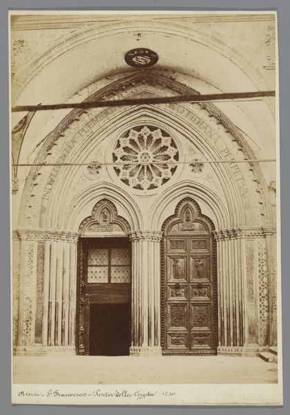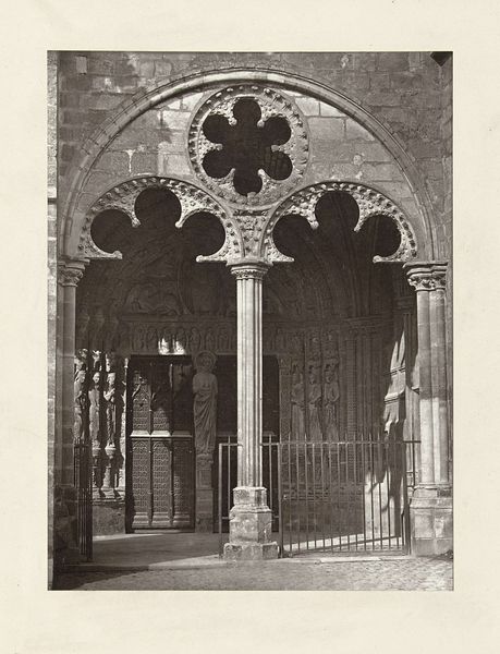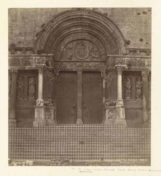 This photograph of the Portaal van de San Zeno Maggiore was taken by Fratelli Alinari. The sepia tones and stark presentation capture the portal’s imposing structure, inviting immediate contemplation on architectural form and symbolic meaning. The composition emphasizes symmetry and balance. The arched entrance, flanked by intricately carved columns and guarded by stone lions, creates a focal point drawing the eye into the depths of the basilica. The high contrast and texture highlight the detailed reliefs, which are not merely decorative but communicate narratives and theological concepts. The doorway's design and the surrounding carvings function as a semiotic system. The structure represents an entry point not just into a physical space but into a realm of spiritual and cultural significance. This photograph encourages a deeper analysis of how architecture can convey meaning, challenging us to consider the interplay between form, function, and historical context. The photograph invites reflection on how we interpret spaces and their symbolic weight.