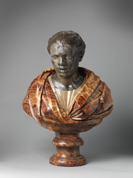Jonathan Scott Hartley made this bronze bust of Lawrence Barrett as "Cassius." The process of creating a bronze sculpture like this is quite complex, involving a series of steps from the artist's studio to the foundry. First, Hartley would have modeled the initial form in clay, capturing the likeness and emotion of the actor in character. This clay model would then be used to create a mold, into which molten bronze is poured. Once cooled, the bronze is carefully removed, revealing the sculpture's raw form, and refined with chisels. The choice of bronze is significant. Its durability suggests a desire for permanence, as well as the lasting legacy of both Barrett and the character he portrayed. The dark patina gives the sculpture a sense of gravitas, reflecting the serious nature of Cassius. The labor-intensive process of bronze casting imbues the work with a sense of tradition and craftsmanship, highlighting the skill of both the artist and the foundry workers involved in its creation. Considering the material, making, and context allows us to appreciate the artistry and cultural significance of the sculpture.