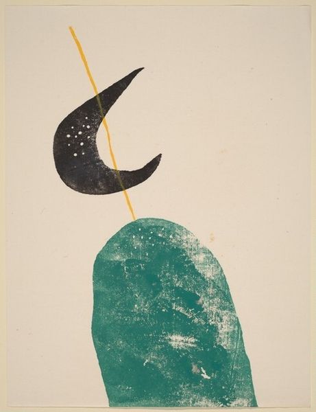 Joan Miró, in this untitled print, presents us with a yellow crescent, echoed below by a smaller, black shape, tied to a flourish of red, blue and green. This image is a striking example of symbolic distillation. Consider the crescent moon—an ancient symbol of change and cyclical rhythms. Throughout history, across countless cultures, the moon has represented fertility, growth, and the passage of time, linking our earthly existence to the cosmos. The simplified lines of the crescent recur in ancient Near Eastern art as well as in early Renaissance depictions of the Madonna, revealing the cyclical nature of symbols through time. Notice how Miró distills this primal symbol to its core essence, tapping into a collective memory. In our subconscious, the moon may conjure a sense of mystery and the unknown, a powerful force engaging viewers on a deep, almost dreamlike level. Miró understands and uses this visual lexicon with incredible precision, resulting in a unique piece.