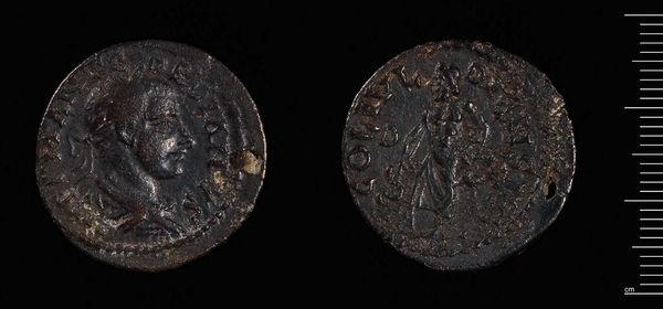 Curator: Here we have a fascinating artifact: a coin from Antiocheia Pisidiae, minted under Philip I, also known as Philip the Arab. Editor: It's tiny! And so worn. The surface speaks to so much handling, exchange, a whole material history embedded right there. Curator: Exactly! Consider this coin's journey. Minted in a Roman colony, likely using locally sourced metals and labor. What power dynamics were at play? Editor: The coin's imagery surely broadcast Roman authority, even in a distant province. Who was being excluded? What message did it send? Curator: The production of coinage was tightly controlled. We must think about the systems that allowed this object to exist and circulate. Editor: This coin is more than mere money. It served as a form of propaganda, a marker of Roman presence, and a little artifact that shows the culture back then. Curator: Absolutely. Examining the materials and its creation reveals a story that helps understand the processes and life back then. Editor: Reflecting on its age and journey, it shifts how I perceive value. The coin's value far exceeds monetary worth.