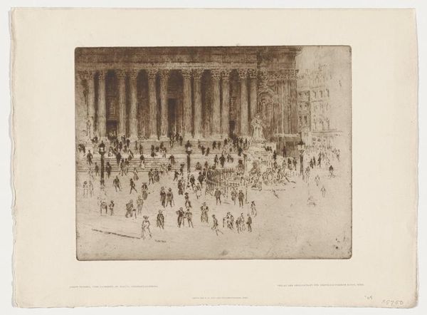 Joseph Pennell etched this image of the British Museum in 1907. The monumental structure, defined by rows of classical columns, evokes a sense of enduring cultural legacy. The columns, derived from ancient Greek and Roman architecture, are not merely structural; they are powerful symbols of stability, order, and the foundations of Western civilization. These very columns echo through time, finding their way into Renaissance palaces, and even modern government buildings. Consider the emotional weight of these architectural forms—they embody a longing for a past perceived as glorious and balanced. The persistence of classical motifs in architecture is no accident. It reflects a deep-seated human desire to connect with history, to find reassurance in established forms. Like the recurrence of certain archetypes in dreams, these symbols tap into a collective memory, shaping our understanding of power and tradition. This visual language is ever-evolving, constantly being reinterpreted, yet the echo of its origins remains.