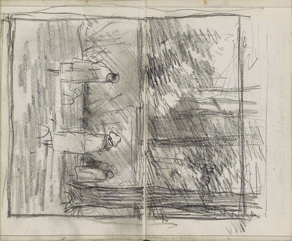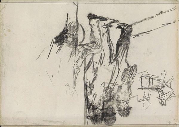 Isaac Israels made this drawing, ‘Figures on the Street, Possibly in Amsterdam’, using chalk on paper. The eye is drawn to the interplay between dense, dark lines and the airy, light spaces around them, creating a dynamic sense of movement and fleeting impressions. Israels captures the essence of a bustling street scene with a remarkable economy of means. The use of line is particularly striking; it’s both precise and spontaneous, suggesting forms without fully defining them. This technique resonates with semiotic theories, where signs point towards meaning, rather than concretely defining it. The figures and architectural elements are evoked through a network of lines, inviting the viewer to complete the image in their mind. Notice how the composition avoids a traditional focal point, challenging conventional notions of perspective and representation. Instead, it offers a glimpse into the ephemeral nature of urban life. This work embodies a shift towards capturing subjective experience. The drawing remains open-ended, a testament to the idea that art is a continuous process of interpretation.