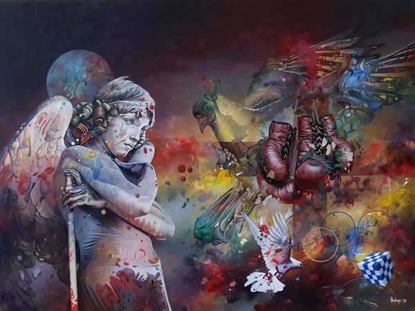 Dragan Ilić Di Vogo made this compelling image, ‘Eternal Love’, using paint to explore a rather classical theme with very contemporary eyes. I find myself drawn to the way Di Vogo doesn’t hide the traces of their process. The colors are layered, sometimes muddy, but always alive, giving the impression of something built up over time. The textures vary from smooth, almost translucent washes to more opaque, scumbled marks, creating a push and pull effect that keeps your eye dancing across the surface. Look at the hands, for example, how they seem to dissolve into the background, yet are rendered with such anatomical precision. There's a tension between representation and abstraction here, a dialogue between the seen and the unseen. It brings to mind the work of Francis Picabia, another artist unafraid of mixing it up, of letting the process be visible, and of embracing the contradictions inherent in artmaking. It reminds me that art is always an evolving conversation, open to endless interpretations.