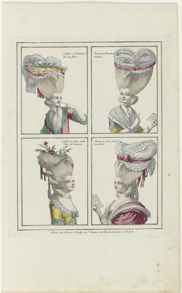 This print, "Gallerie des Modes et Costumes français...Coiffure á la Flore..." was created anonymously in France, a visual document of the extravagant hairstyles that defined elite fashion. Consider the towering hairstyles and elaborate hats, ornamented with flowers, feathers, and pearls. These aren't just fashion statements; they're potent signifiers of social status and economic power. In pre-revolutionary France, fashion was deeply intertwined with courtly life and aristocratic privilege. The higher the hair, the wealthier and more influential the wearer. These visual codes reinforced existing social hierarchies. To understand this image fully, we need to delve into the social and economic conditions of 18th-century France, the world of the French court and the ancien regime. We might look at fashion plates, conduct studies, and even scrutinize contemporary accounts. It is through such investigations that we can truly grasp the social life of images.