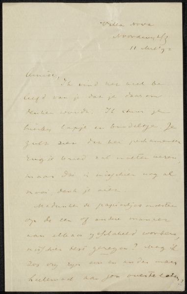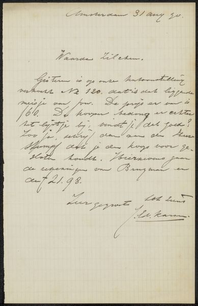 Editor: This is "Brief aan Philip Zilcken" by Hendrik Johannes Haverman, thought to be from 1905. It's a mixed-media drawing, a letter really, on aged paper, in the collection of the Rijksmuseum. The script gives it the air of a personal sketchbook. How do you see this work? Curator: I see a confluence of the personal and the professional. The hand-drawn text itself is a symbol. Notice how Haverman uses his script not just to convey information, but also to imbue the message with a certain emotional quality, a visual echo of his inner state. The letter, seemingly a mundane correspondence, transcends its function to become an intimate portrait of the artist himself. Does the handwriting itself suggest anything to you? Editor: It’s a bit hurried, perhaps? Functional, but definitely showing his personality in the curves and slants. Curator: Precisely. And consider, the act of handwriting itself—before typewriters became ubiquitous—was a direct extension of the self. This letter, then, becomes a form of self-portraiture, wouldn’t you agree? The medium and the message become inseparable symbols, imbued with layers of meaning beyond the literal text. Editor: I hadn’t thought of it that way, but I see it now. It is much more personal than just the text; it carries so much meaning through the act of writing itself. Curator: This simple piece allows us to recognize how ordinary objects and actions carry significant emotional and cultural resonance. An authentic form of intimacy is recorded here. Editor: I’ll definitely be thinking differently about letters now! There’s so much more there than just the words.