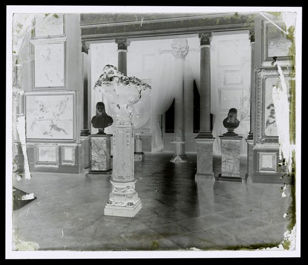 Editor: This is a photograph from between 1855 and 1885 by E. Reulbach, titled "Assyrische zaal in de Glyptothek in München", which translates to "Assyrian Hall in the Glyptothek in Munich." It's a view of a room adorned with recreations of Assyrian reliefs. It's fascinating how they've staged this space. What do you make of the impulse behind recreating an ancient Assyrian space within a 19th-century museum? Curator: The Glyptothek’s Assyrian hall represents a fascinating moment in the 19th century, one of burgeoning archaeological discoveries and the public’s growing appetite for understanding ancient civilizations. Reulbach’s photo captures the museum's ambition not just to display artifacts, but to construct an immersive educational experience. How do you think this kind of reconstruction shapes the viewer’s understanding of Assyrian culture? Editor: Well, seeing it presented this way, I suppose it implies a certain power dynamic. The Assyrian culture is presented as something to be observed, almost consumed, within a European context. The museum itself becomes a symbol of control. Curator: Precisely. Think about the context of Orientalism. These reconstructions weren’t necessarily aiming for accurate representation; they often reflected contemporary European fantasies and political agendas. What’s lost when we "recreate" another culture’s space? Editor: Authenticity, obviously, but also perhaps an understanding of the original function and context. It becomes a kind of staged performance rather than a genuine encounter. Curator: Indeed. And what does this say about the museum's role – is it an educator, a stage for power dynamics, or something in between? Editor: I guess it’s all of those things, a complicated intersection of history, power, and representation. Thanks; I see this photograph in a completely different light now. Curator: My pleasure. Considering art as a reflection of its time and the society that creates and views it always deepens the experience.