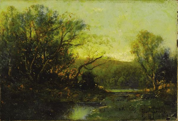 Robert Julian Onderdonk painted 'Autumn Sunset' with oil on canvas, and it’s a lesson in how colors can whisper to each other. The paint is applied thinly, like watercolor almost, especially in the sky, where the colors blend softly from pale greens to peachy oranges. It makes me think about how process isn't always about brute force, but about subtlety, about finding the right touch to let colors breathe. Look at the way the light hits the water in the foreground, it’s not a direct reflection of the sky, but rather an echo, a more subdued version that feels like a memory of the sunset. It reminds me that art is about conversations, not declarations, about the ongoing dialogue between the artist, the medium, and the world. It suggests that there’s more than one way to see a sunset, or anything else for that matter.