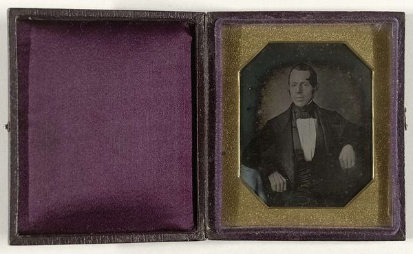 This daguerreotype by William Shew captures a portrait in the mid-19th century, encased with what appears to be a maple leaf. The maple leaf, beyond its botanical identity, is deeply embedded in cultural symbolism. The symbolic presence of the leaf takes me back to ancient times when leaves were associated with fertility, growth, and the cyclical nature of life. Consider the Greek laurel wreath, a symbol of victory and status, the very image of triumph and immortality. Here, in the context of the daguerreotype, the leaf might subtly speak to a desire for remembrance. It perhaps aims to capture the subject's essence, but the collective memory and the unconscious desires of the individual intertwine. The leaf adds an emotional layer, engaging viewers on a deep, subconscious level, evoking feelings of nostalgia and a longing to connect with the past. It's fascinating how this natural motif transcends its original context, resurfacing, evolving, and taking on new meanings in this rapidly changing world.