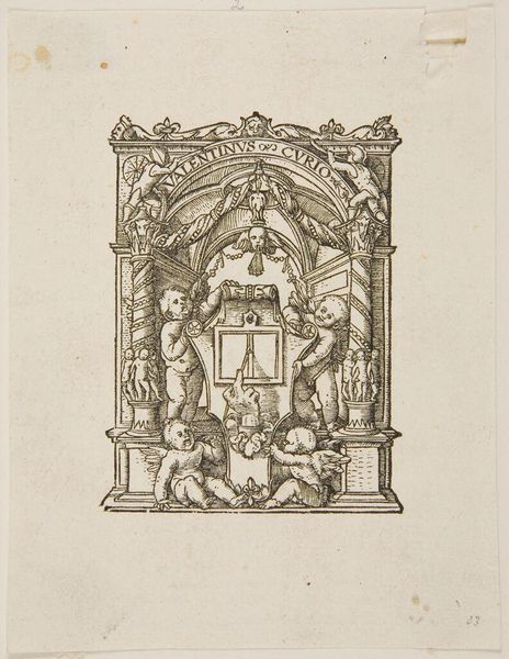 Curator: This drawing, held at the Harvard Art Museums, is Pietro Bracci's "Study for the Tomb of Cardinal Giuseppe Renato Imperiali." Editor: It feels so cold, despite the cherubs. What was Bracci thinking with all that severe stone? Curator: The drawing showcases Bracci's mastery of neoclassical form. Note the allegorical figures, the balanced composition, and the idealized portrait of the Cardinal above. The lines and forms create an intricate play of light and shadow. Editor: Right, but it's all preparation for something grander, isn't it? The stone itself, the carving, the labor that would go into the final tomb. This is just the idea—the real weight comes from the making. Curator: Perhaps. But within this design we see a celebration of virtues: piety, wisdom, and power, all framed within the classical vocabulary of the time. Editor: Ultimately, it's a monument to the Cardinal, but also to the hands that would bring it into being. Curator: Indeed. A testament to both the abstract ideals and the concrete realities of art. Editor: A fitting end.