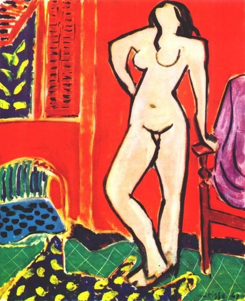 Henri Matisse's "Pink Nude", held at the Baltimore Museum of Art, is a vibrant exploration of form painted in the early to mid-20th century. The immediate visual impact of this artwork arises from its bold color choices. The nude figure, rendered in shades of pink, lays across a blue tiled surface, creating a striking contrast. Matisse simplifies the body, reducing it to essential lines and shapes. The geometric grid of the blue tiles interacts with the curvilinear form of the nude, creating a dynamic tension. Notice how the background is not merely a setting but an active element that shapes our perception of the figure. Matisse destabilizes traditional values of representation, challenging our expectations of space and form. It’s a visual investigation into how color and line alone can convey depth, emotion, and meaning. This piece embodies modernism's departure from strict realism, emphasizing instead the artist's subjective experience of the world. "Pink Nude" remains an engaging site of interpretation, inviting us to consider the power of pure visual elements.
