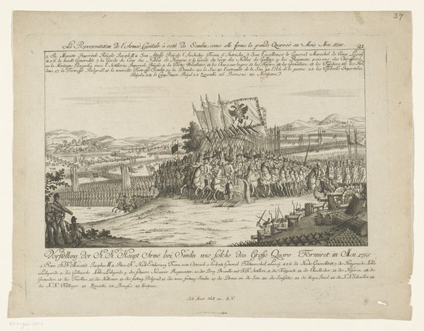 Louis Joseph Masquelier created this print, titled ‘Slag bij Marignano’, sometime between the late 18th and early 19th centuries. It depicts the Battle of Marignano, a significant clash that took place in 1515 between French and Swiss forces. Masquelier’s print captures a scene of intense conflict, but it also reflects the values and historical perspective of his own time. The focus on military glory and the depiction of the battle as a grand spectacle speaks to the evolving relationship between the powerful and the powerless. Consider how this artwork embodies a specific masculine ideal of leadership. It encourages us to reflect on the narratives we inherit and the ways in which they shape our understanding of history. While celebrating military victory, it also subtly prompts us to consider the human cost of such conflicts and their lasting impact on society.