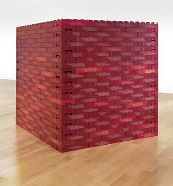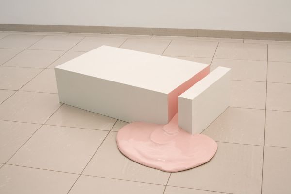 Curator: Richard Artschwager's "Table with Pink Tablecloth," created in 1964, immediately strikes me as an exercise in minimalist geometry. It appears deceivingly simple. Editor: My first thought is the uncanny feeling it evokes. It’s both familiar and foreign, a bizarre hybrid object frozen between functionality and a deliberate flatness that throws its realness into question. Curator: Yes! Let’s delve into that flatness. Artschwager's employment of mixed media, including ink, results in this precise, almost unsettling rendering of everyday domesticity. The crisp lines, the stark contrast, push it towards an almost diagrammatic representation. The "tablecloth," as it were, defies our expectations of texture. Editor: This table almost parodies consumerist notions of postwar domestic bliss. Think of the aspirational symbolism ingrained in a perfectly set table, a symbol often leveraged to perpetuate gendered expectations. Yet here, the expected warmth is entirely subverted, the familiar image recontextualized. I almost see a critical comment on ideal home aesthetics and those forced family interactions around it. Curator: Perhaps. I find the emphasis lies more squarely on formal invention. The table ceases to be merely a table; instead, it functions as an exploration of planar relationships, void and solid space. Consider the brown trapezoids beneath the pink surface. Editor: But aren't those spatial relationships, the disjunction and almost violent angles where color meets color, a reflection of societal unease at the time? This was made during the height of the Civil Rights movement. While not overtly political, such aesthetic rupture, in my opinion, reflects the disruptions taking place across social, cultural, and racial planes. Curator: An interesting perspective. I acknowledge its position within a particular cultural moment. However, the artist's engagement with perception, rather than pure representation, makes it a rich object for semiotic play, almost existing like a symbol of the idea of a table more than a literal furnishing object. Editor: Perhaps that is precisely where our interpretations converge. It seems Artschwager created something far more impactful than simply a design statement; he manifested a physical paradox capable of inspiring commentary from design to sociopolitics, making its endurance justifiable decades later. Curator: Indeed. Whether read formally or within a contextual lens, this remains a pivotal contribution to the blurring of art and everyday life.