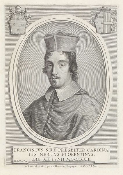 Paulus Pontius made this print of Fabius Chisius using etching around 1628 in the Netherlands. Chisius’s vestments point to his important position within the Catholic Church. Consider the Latin inscription surrounding the portrait. Note especially the phrase "Et veritate justitia" which translates to "And truth [with] justice." These words point to the self-conscious role the Church played in the historically turbulent Dutch Republic. It was a time of religious reformation, counter-reformation, and wars of independence. Chisius acted as a papal nuncio or ambassador during peace negotiations in Münster. A historian uses visual and textual clues together to understand how institutions and individuals present themselves to the world. In this case, the print operates as a symbol of hope for peace, mediated through the Catholic Church. What resources might you use to understand better this historical moment and the political role of religious institutions?