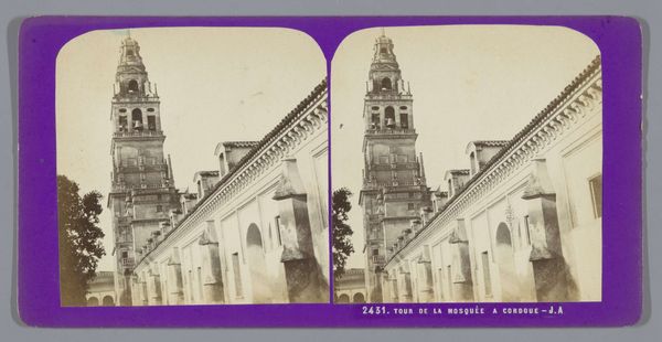 Curator: Oh, what secrets this old photograph holds. It’s Jean Andrieu’s "Exterior of the Cambrón Gate in Toledo," captured between 1862 and 1876. I’m completely drawn in! Editor: I see what you mean. It exudes a stoic timelessness, doesn't it? The imposing stone structure, a gateway to somewhere… or perhaps, from somewhere? It's incredibly rigid, symmetrical...and sepia, of course. Curator: Yes, sepia tints lend an almost dreamlike quality. I see not just a gate, but an entire epoch. It embodies resilience, the city’s silent guardian. The Cambrón Gate isn’t merely architecture; it is a visual symbol of strength. It seems it wants to invite you, with that arch and subdued tonality, to enter another dimension. Editor: Indeed. It seems the gate acts as a psychological threshold. The architectural symbols like the twin towers are a classic display of might. One has to ask what the symbology meant to the inhabitants of the time, and even now for the spectator. Curator: Exactly! You articulated perfectly the connection across the ages, from Jean Andrieu to present day. I picture horse-drawn carriages passing through the arch, shadows dancing on cobblestone...a real time capsule. Editor: Absolutely! Every line and shadow carries so much cultural weight and reflects both an external image of grandeur, as well as perhaps, some individual projection. It stands still but suggests motion... what journeys it facilitated and what journeys the viewer imagines it might. Curator: And in the end, isn't that what all great art aspires to do—ignite the journey? I have a stronger sense now of its magnetic aura. Editor: The photograph truly provides a stark encounter with Toledo’s past that is not easily forgotten, once we consider all the symbols and psychological doorways on display.