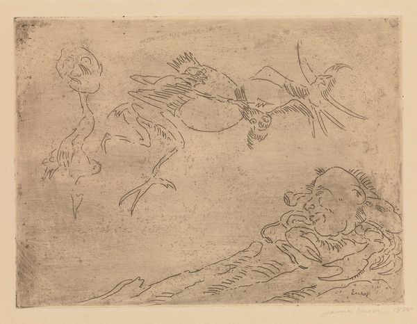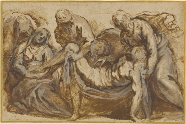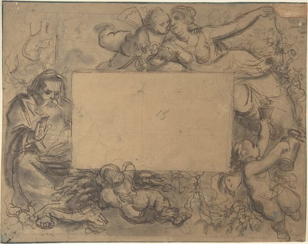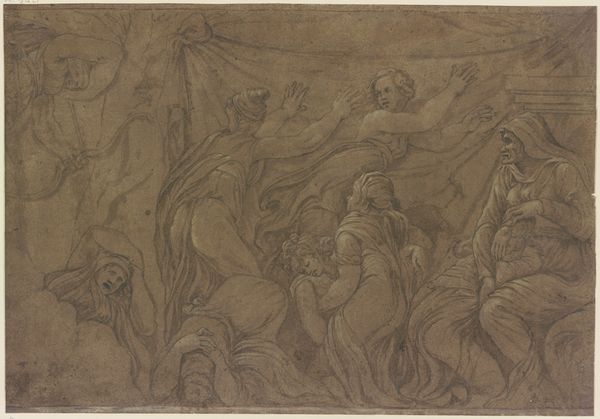 Curator: Salvator Rosa, a key figure in Baroque art, is the creator of this compelling drawing titled "Two Grappling Figures." Rosa, working with pen, chalk, and ink on paper, encapsulates a violent, chaotic energy here. What's your immediate impression? Editor: Raw, visceral—like a snapshot of primal struggle. There's something almost painful in how intertwined they are. I feel like I'm glimpsing a very private, fierce moment frozen in ink and chalk. Curator: Note the medium – a combination of pen, chalk, and ink—and the hasty, almost frantic application of these materials onto the paper. Rosa appears more concerned with conveying movement and emotion rather than polished representation. What emerges are studies not only for figures but, perhaps, the drama of labor itself. The social contexts of artistic production in Baroque Italy cannot be ignored here. Editor: Yes! There's that tangible, frenzied energy in the cross-hatching and the dynamic lines. And, strangely enough, the monochromatic palette contributes to this sense of contained frenzy – a pressure cooker ready to blow. Almost feels as if I am looking at a rough sketch from a very turbulent dream. Curator: He seemed to consciously blur the distinction between preparatory sketch and finished work. Consider the economics of artistic training: rapidly executed sketches like these may have circulated through the workshops of Baroque masters, becoming teaching aids in themselves, almost like blueprints of passion to be consumed by future generations. Editor: So, a blueprint for expressing intense emotion... That’s fascinating because it resonates still, you know? It bypasses the refined elegance often associated with Baroque and speaks directly to the gut. And honestly, it's wonderfully unpretentious; this piece feels wonderfully liberating, like, just grab the chalk and get it ALL out! Curator: Rosa's works often explored themes of conflict, heroism, and the sublime, echoing the tumultuous times he lived in. This specific work on paper, as part of Chicago's Art Institute Collection, becomes another facet in understanding the labor of emotional creation, a window onto his restless spirit. Editor: Agreed, what initially felt spontaneous and messy actually has remarkable intentionality. Makes you think about all the layers involved in even the simplest sketch. Thanks for walking me through that. Curator: My pleasure.