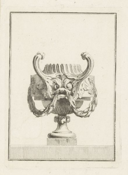 Curator: Immediately, there's this incredible tension—it feels almost theatrical. Melancholy, maybe? Editor: It is rather striking. Let’s dive in, shall we? What we're looking at is Stefano della Bella's engraving from between 1640 and 1660, titled "A cartouche with a sundial, a skull with feathers on its head at top, from 'Eight Emblems for the Funeral of Francesco de Medici.'" You can find it here at the Metropolitan Museum. Curator: Wow, quite a title. I get the funerary vibe now. That skull is something else—dressed up, yet still...skull-like. But then there is a sundial within all this ornamentation? It is a morbid dance of decadence and death. What a thought. Editor: Yes, isn’t it fascinating how he layers those elements? The skull adorned with feathers speaks to fleeting vanity, almost a memento mori flipped on its head – reminding us not just of death, but of how quickly life and beauty fade. And, below it, there's this intricate cartouche featuring the sundial. The Latin inscription “Umbrae transit us Tempus nostrum” reminds that time shadows our journey. Curator: Shadows... so subtle, yet so potent! Time and mortality staring back at each other in one tidy package. Della Bella’s got quite the flair. How interesting this all showed up for the funeral of Francesco de Medici. How old was he? Was it a tragic death? So many questions start running through my mind. Editor: A good point to remember: Symbols gain power precisely from these associations. This emblem, initially meant for mourning, resonates beyond a single life, engaging broader themes. I believe that powerful symbols create lasting, intricate ripples that speak volumes, connecting the emotional present with both historical and symbolic memory. Curator: Precisely. That's the allure, isn't it? It ceases to be just about the Duke's funeral; instead, it’s the recognition of ourselves staring back. Well, that reflection certainly resonated with me today. It’s more than ink on paper; it’s life’s fleeting whispers on full display. Editor: Indeed. Della Bella has offered a striking tableau that speaks volumes through visual symbolism, leaving us pondering the transient nature of existence itself. A compelling reminder housed in a single image.