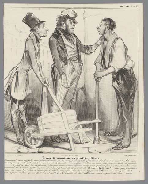 Honoré Daumier created this lithograph, "Ca mord, quelle chance!" in France during the 19th century. The print depicts members of a fishing club, highlighting social hierarchies and the pretensions of the bourgeoisie. Daumier uses caricature to emphasize the physical features and postures of the figures, visually signaling their social status and self-importance. The title translates to "It bites, what luck! I forbid you to catch a fish before me, don't forget that I am your vice-president." This suggests that social rank trumps the supposed egalitarianism of the fishing club, revealing the subtle but ever-present class dynamics of French society at the time. To truly understand Daumier's critique, one might research the rise of social clubs in 19th-century France and their role in solidifying class distinctions. The print serves as a reminder that artistic meaning is always tied to its social and institutional context.