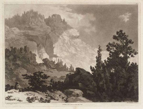 Curator: This is John Varley’s "An Ancient Castle," part of the Sketching Society Subject. Though undated, Varley lived from 1778 to 1842. Editor: It feels imposing, almost romantic in its stark composition. The scale suggests something monumental, but also ruined. Curator: Note how Varley uses washes to construct a hierarchy of forms; the castle is central, supported by the craggy geology. The texture guides the viewer's eye. Editor: Ruined castles are potent symbols of the past, but this one seems more about the sublime power of nature, dwarfing human ambition. It's the romantic era's fascination with decay and rebirth. Curator: Indeed. The monochrome palette certainly reinforces a sense of drama and timelessness, creating visual unity. Editor: I see echoes of mortality and resilience intertwined here, in the iconography of the broken castle set against an enduring landscape. Curator: A perceptive insight. Thank you. Editor: It's been fascinating to view this through the lens of structure and symbolism.