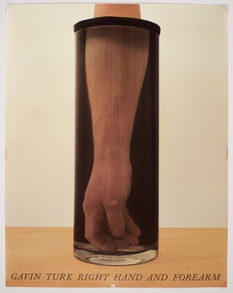 Editor: Here we have Luis Camnitzer's "Una Que Cubre La Palabra Que La Nombra" from 1976. It's a mixed media piece; it seems to consist of paint and a wooden frame. I'm really intrigued by the layering of forms and the way the paint visually interacts with the text below. What strikes you when you look at this work? Curator: Formally speaking, the relationship between the object and its framing device immediately asserts itself. Observe how the wooden frame not only contains the pictorial space but also echoes the rectangular format of the textual element at its base. Do you notice how this layering establishes a structural rhythm? Editor: Yes, I see that. The repetition of the rectangle definitely brings a sense of order, almost like a visual echo. But how does that rhythm relate to the title, to the “word that it names?" Curator: Indeed, consider the colour palette employed, limited to a primary triad. The forms interlock, orange yielding to blue and finally to black, which then bleeds over the literal text below. How do these choices affect the balance within the work, the weight given to each element? Editor: The colours definitely draw the eye to the center, making the layered paint the focal point. But it's the dripping that’s throwing me. It's like the colors are obscuring something. Curator: Precisely. This obscuring, this apparent defacement, does it undermine or underscore the signifying function of language? Is it negation or transformation? Editor: I hadn’t thought of it that way. I suppose it complicates a simple reading. Maybe it makes us question how meaning is constructed in the first place. Thanks for that insight. Curator: A close analysis of its components encourages us to see not only what is, but how its inherent architecture achieves its status as art.