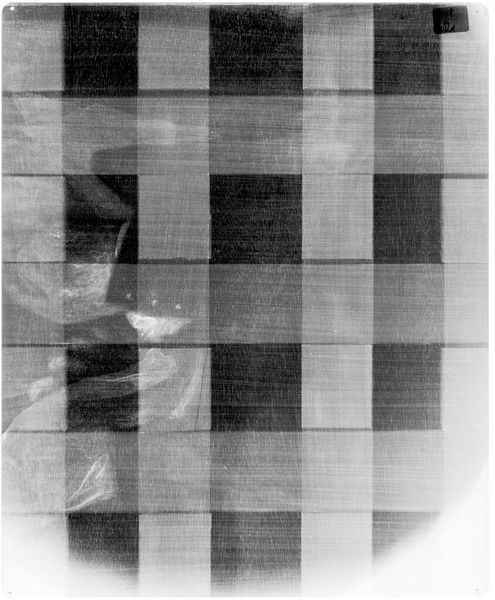 Curator: The image before us is an X-radiograph of “Portrait of a Man, a Duke of Saxony” after Lucas Cranach the Elder, held here at the Harvard Art Museums. It’s haunting, almost like a ghost caught in a net. Editor: Yes, the grid is quite striking. This radiograph provides a fascinating look into the materiality, perhaps revealing information about the support structure, the preparation layers, and the pigments used by Cranach's workshop. Curator: It’s interesting to think about the layers of power involved. Cranach, a court artist, painting a Duke, and now, this clinical eye exposing its hidden material history. Editor: Indeed. The X-ray reveals decisions about materials and labor. We can ponder the social and economic context surrounding the work's creation and its preservation over time. What does it mean to dissect a portrait of power in this way? Curator: Perhaps to demystify it. To see the human hand, the physical reality, beneath the Duke's painted facade. It’s a type of material deconstruction. Editor: Precisely, offering a unique perspective into both art history and the broader societal structures it reflects.