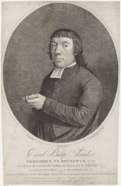 Editor: So, this is "Portrait of a Young Minister," painted with oils sometime between 1535 and 1584 by Pieter Pourbus. The subject has a very austere look. What do you see in this piece beyond the initial impression? Curator: The austerity is precisely the entry point. Consider the Reformation as the backdrop. The subject’s black clothing and the book, likely a religious text, signal a departure from the opulent displays of the Catholic Church. This isn't just a portrait; it's a statement of reformed identity. How does the sitter’s direct gaze strike you? Editor: Intense. A bit confrontational, actually. Curator: Exactly! It’s designed to project conviction and moral authority. But look closer: what does it mean for a *young* minister to be depicted with such gravity? How do you reconcile this ideal with the social realities of religious upheaval at the time? Editor: It's almost like he is carrying the weight of the Reformation on his shoulders. A young man embodying serious responsibilities. The ring on his finger adds an interesting dimension though... It contradicts the supposed denial of earthly things, right? Curator: Precisely! That's where it gets truly interesting. Pourbus isn't simply producing a straightforward representation. He's acknowledging the complexities and potential contradictions within this new religious order and within social class structures. The individual exists within a system of power relations. Does that shift your interpretation at all? Editor: It makes it far more nuanced. I came in seeing only severity but now I see the intersection between religious conviction and social performance. Thanks! Curator: My pleasure. It's in grappling with these nuances that the real power of art, to challenge and provoke thought, becomes clear.