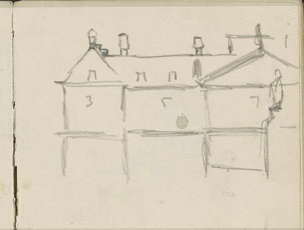 Editor: So, this is Dankvart Dreyer's "Flere udkast til et hus i en slags halv-gotisk smag," a pencil drawing dating from 1831 to 1852. I’m struck by how tentative it feels, like a whisper of an idea. What strikes you about this work? Curator: Well, it's interesting to consider this within the context of Danish Romanticism and its relationship to nation-building. Dreyer’s architectural sketches, though seemingly simple, hint at the era's preoccupation with a specific type of ideal home. What does "home" mean, and what kind of visual language can construct this idea in the public’s mind? Editor: I hadn’t thought about it that way. It's more than just a building; it’s a symbol. Is he intentionally evoking a "half-Gothic taste" to connect with a specific past? Curator: Precisely! The "half-Gothic taste" alludes to a curated national history, potentially referencing a period considered a golden age. But consider also that he's choosing pencil – a readily available medium. This implies the possibility of widespread reproduction and accessibility to the middle classes, promoting the architectural style. Was Dreyer envisioning this home for the elite, or a broader populace? Editor: So the choice of style and medium subtly argues for a certain vision of society. How fascinating! Curator: Indeed. Dreyer subtly influences the debate about who gets to live where, and what styles represent Denmark. It's fascinating to think how this drawing enters and potentially shifts public perception and the values associated with "home". Editor: I’ll never look at a building sketch the same way again! Thank you for helping me to think about its cultural context. Curator: My pleasure! This piece provides a vital understanding of the intertwined social and political narratives ingrained in architecture, which can shape and define community identity.