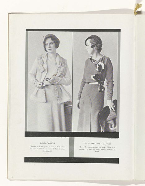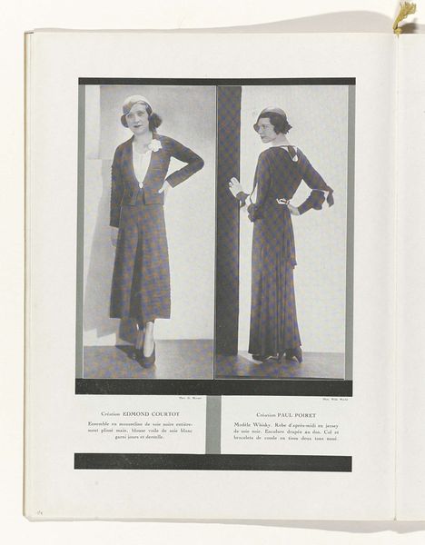 Editor: This is an untitled photograph by Martin Schweig, showing two young girls in matching dresses, seemingly taken during the holidays. The images feel very staged and formal. What story do you think this photograph tells? Curator: It speaks to the societal pressures of childhood, particularly for girls, to perform a certain image of innocence and uniformity. The matching dresses and poses highlight this expectation, a visual representation of social control. Editor: So, you see the photograph as a comment on societal expectations? Curator: Precisely. The fireplace and Christmas tree, symbols of domesticity, further emphasize the prescribed roles within the family structure. It's a carefully constructed tableau reflecting its time, wouldn’t you agree? Editor: I hadn't considered the social commentary. Seeing it as a staged performance definitely gives it a different layer. Curator: It challenges us to look beyond the surface and question the underlying power dynamics at play in seemingly innocent imagery.