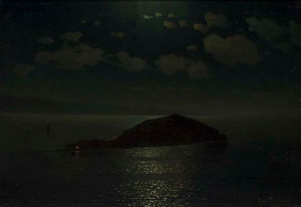Curator: This is C. Bennette Moore's "Untitled (sailboats on water)," currently held at the Harvard Art Museums, a silver gelatin print measuring about 8 by 10 inches. Editor: It feels so stark! Like a dream half-remembered, all silhouettes and shimmering reflections. Is it me, or does the inverted contrast give it an almost ghostly quality? Curator: Precisely. The high contrast emphasizes the masts and rigging, creating an intricate network of lines against the dark sky. The water acts as a mirror, doubling the complexity of the composition. Editor: Yes, that reflection…it almost destabilizes the boats! I feel a longing, maybe a touch of melancholy. Like the end of a long day at sea, the calm before a storm. Curator: The lack of color certainly contributes to the mood, stripping away any sense of place or time, focusing instead on the essential forms and relationships. A visual poem of light and shadow. Editor: Well, said. I'll be thinking about those ghostly sails for some time. Curator: As will I, particularly how Moore captures the silent elegance of these vessels.