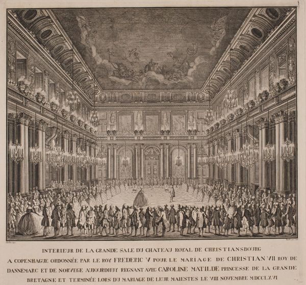 This artwork was composed by Canaletto, using oil paint on canvas. Here, the play of light upon surface is just as important as the scene represented. Oil paints provide an unparalleled capacity to replicate the look and feel of a space through light, shadow, and texture. See how Canaletto captures the sheen of the gilded ceiling, versus the matte finish of the robes worn by the Doge and Grand Council. The artist was also an etcher, and one could argue that his paintings share qualities with the graphic arts. Canaletto’s style often prioritized topographical accuracy and linear precision, much like an engraved print. Understanding the materials and processes employed by Canaletto is important, as they are tied to the economic and social conditions of the time. The availability and quality of pigments, the tools used to grind and mix them, and the patronage system that supported artists all played a role in the creation of this artwork. And of course, it takes time to achieve this level of finesse with the medium. In the end, this highly crafted painting is a testament to the artist's skill, and a reflection of the world in which he lived.