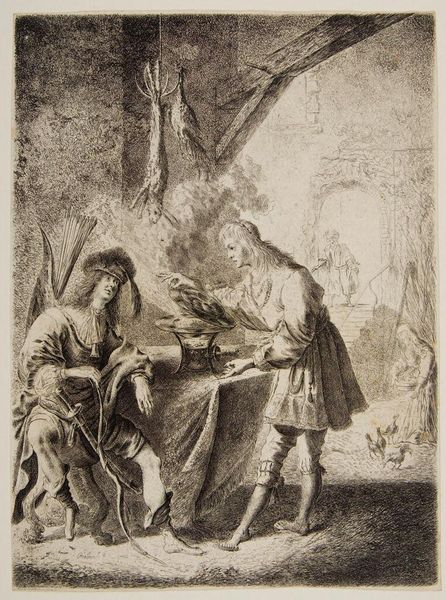 Curator: I am struck by the unfinished quality, the chalky strokes that suggest a work in progress. Editor: Indeed. Here we have Denman Waldo Ross’s "Pesaro Madonna, after Titian," housed here at the Harvard Art Museums. Measuring approximately 35.5 by 19 centimeters, it represents Ross's engagement with Renaissance masters. Curator: I find myself drawn to the large red flag. It seems to symbolize not only victory but also the complex power dynamics at play during the Renaissance. Editor: I see the rapid execution less as lack of finish, and more as the artist drawing attention to the materiality itself; the work offers insight into the artistic processes of both Titian and Ross himself. Curator: Absolutely. The piece serves as a dialogue across centuries, highlighting how artists grapple with tradition, patronage, and evolving societal values. Editor: It makes you consider the labor involved, and how both artists contended with the expectations, and the raw physical creation of their own art. I leave with much to think about in regards to the artistic means.